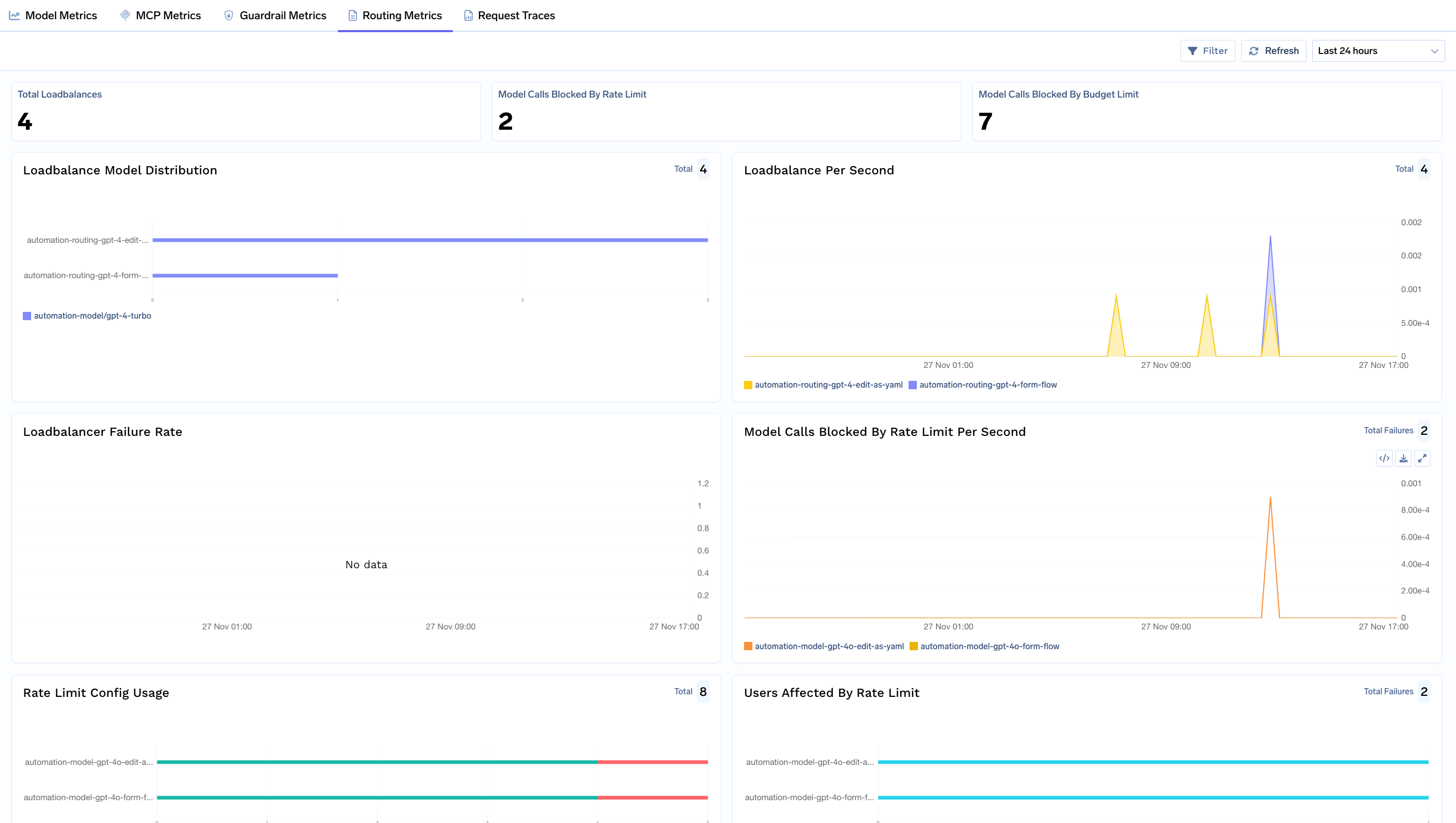 - New Routing Metrics: visualize effect of different AI Gateway configs like Rate limit, Budget limit, Routing, Load Balancing or Fallback.