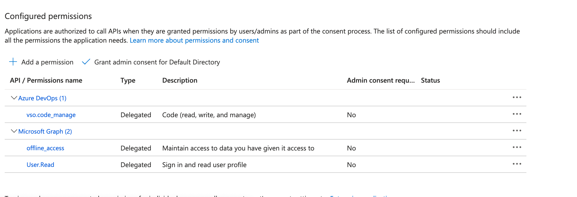 vso.code_manageto allow management of code repositories. - Click Add permissions.
