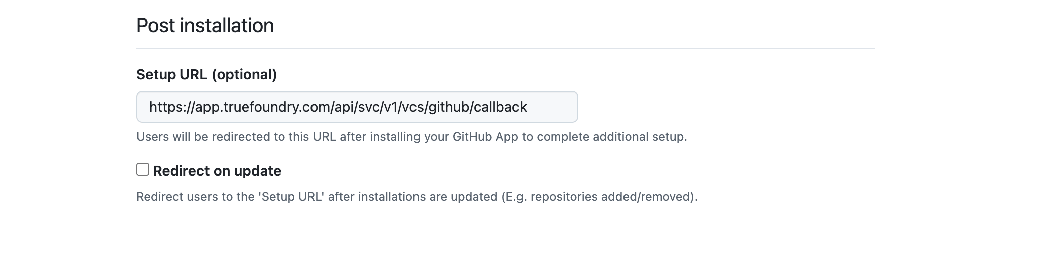 - Setup URL: https://control-plane-url/api/svc/v1/vcs/github/callback