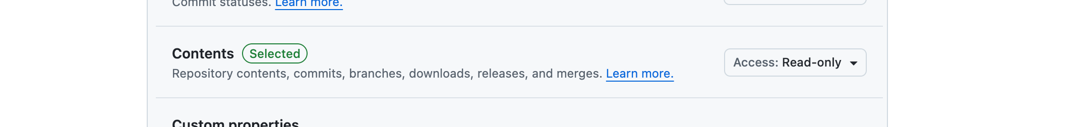 - Now in the permissions section, Give the read only access to contents in the Repository permissions