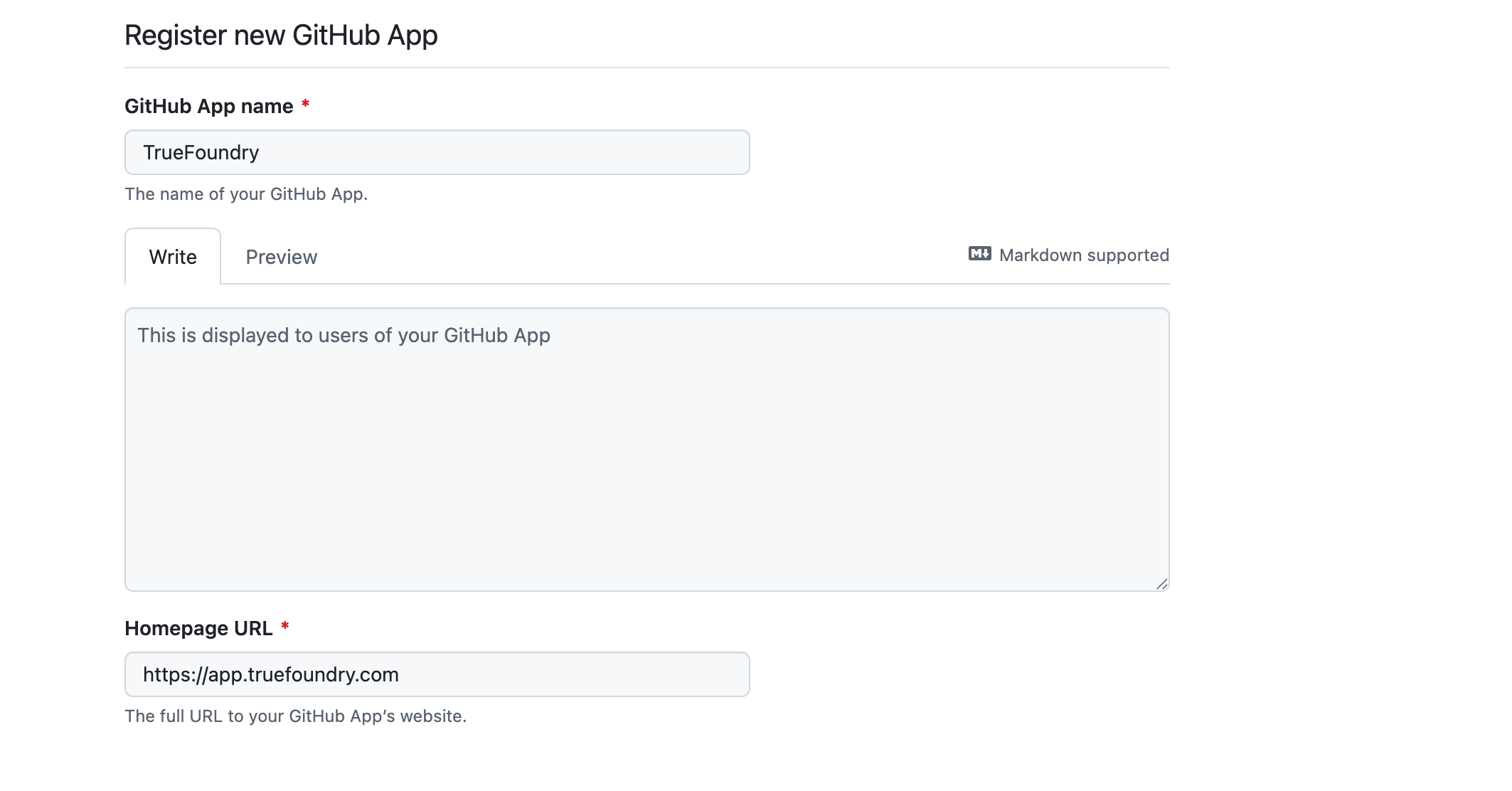 - Homepage URL: https://control-plane-url For example https://control-plane.truefoundry.com