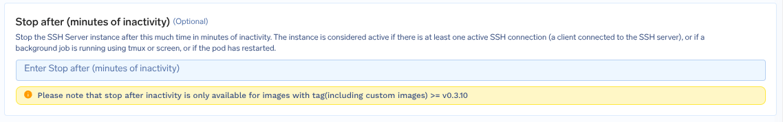 - You can add this by setting the value of Stop after field which is the minutes of inactivity after which you want to stop the server.