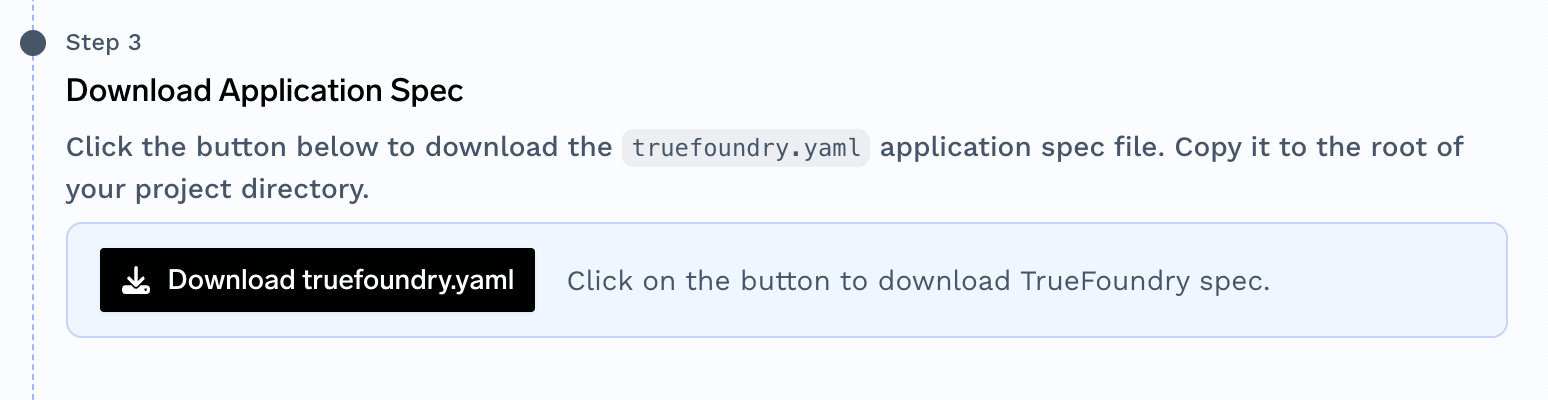 - Download the TrueFoundry specification file(if you have selected yes to keep the YAML spec in your Git repository)