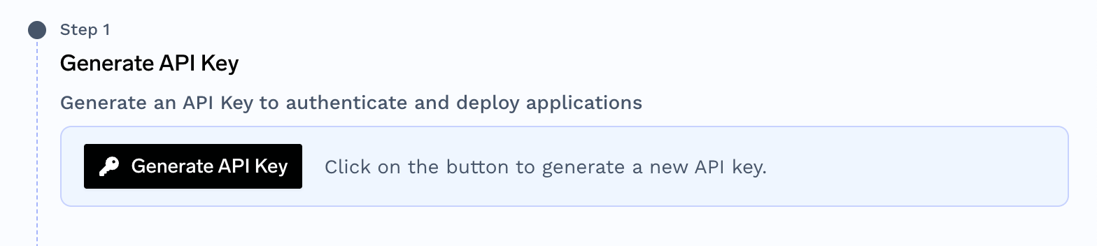 - API key generation instructions, click on the button to generate the API key and copy it.