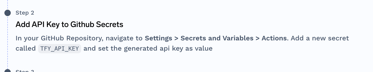 - GitHub secrets configuration, add the API key to the GitHub secrets for the repository.